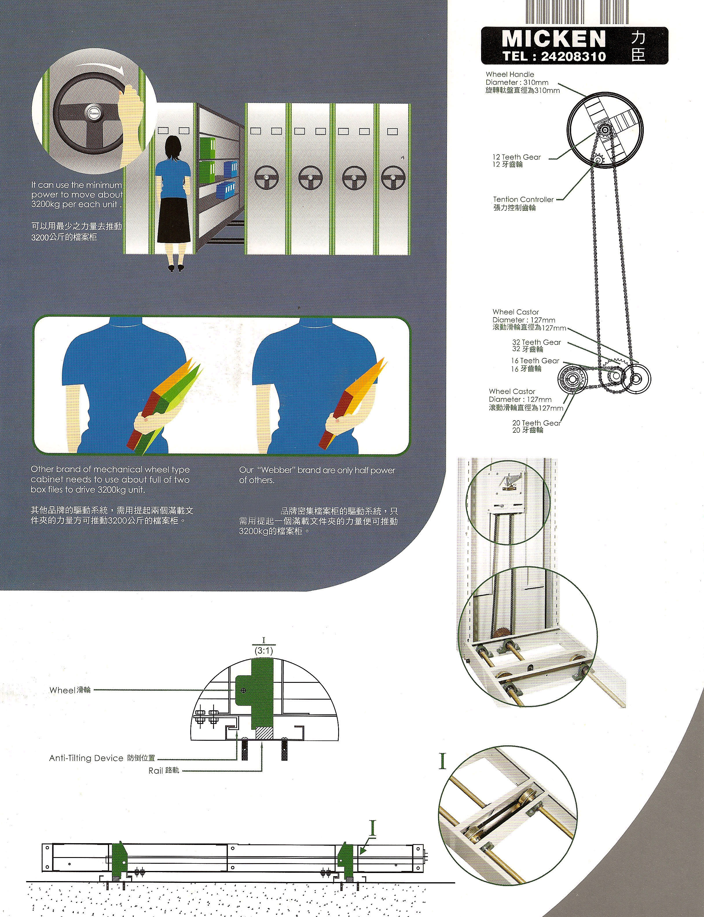 Mechanical Wheel Type Mobile Fil;ing Cabinet